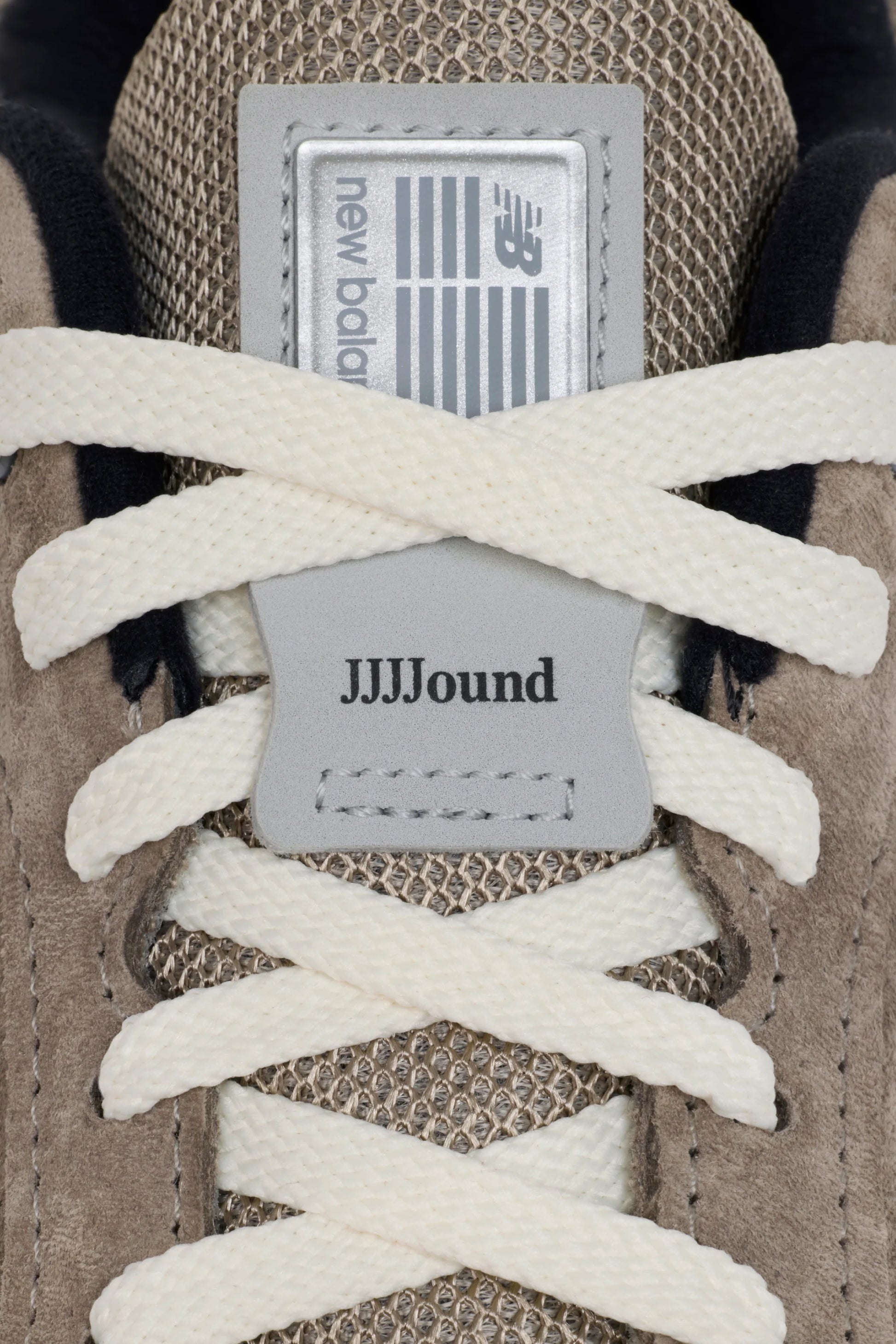 - Mesh tongue, grey overlay with NB badge and JJJJound logo